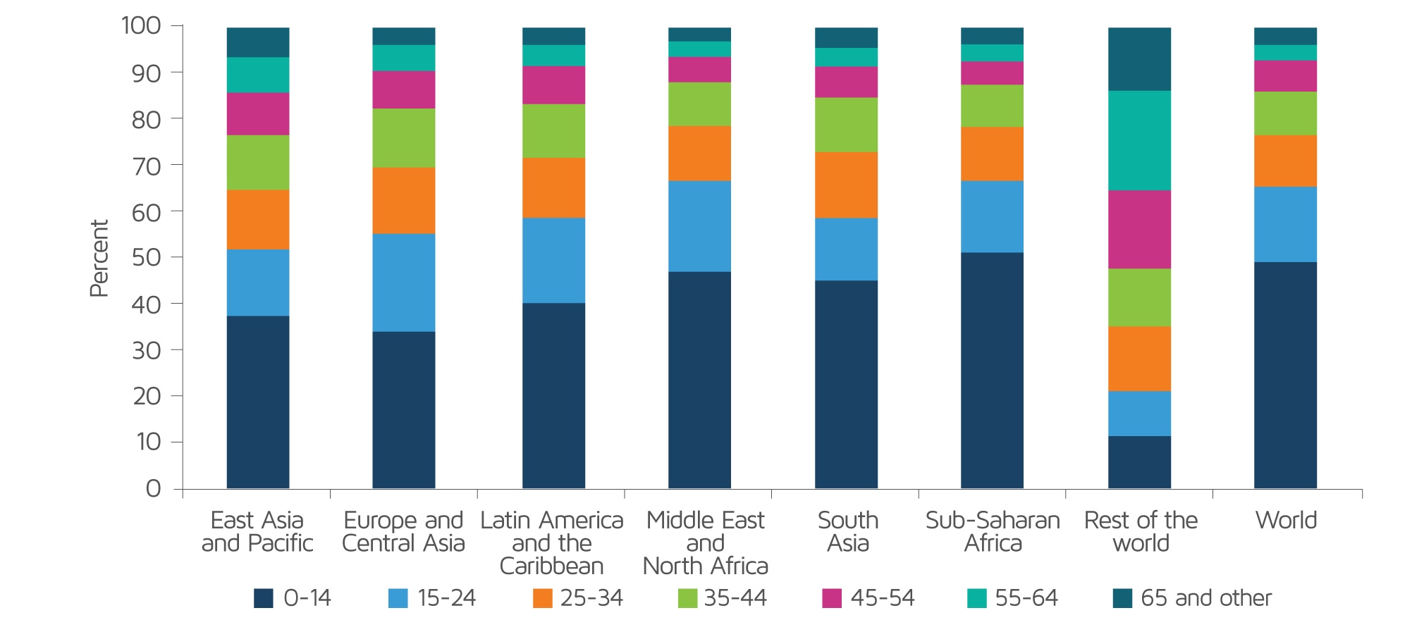 Fig.1. The age profile of the global poor by region