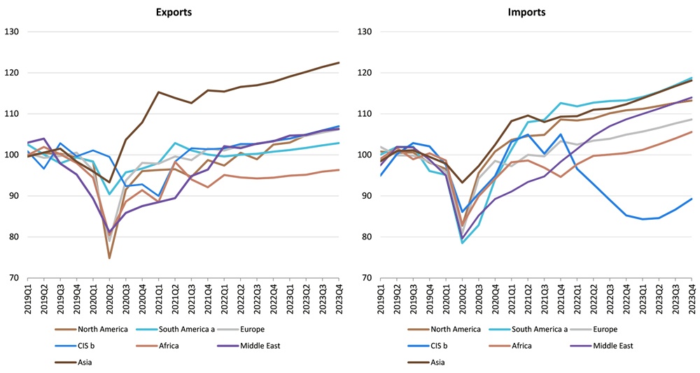 Fig.3. Merchandise exports and imports by region, 2019Q1-2023Q4