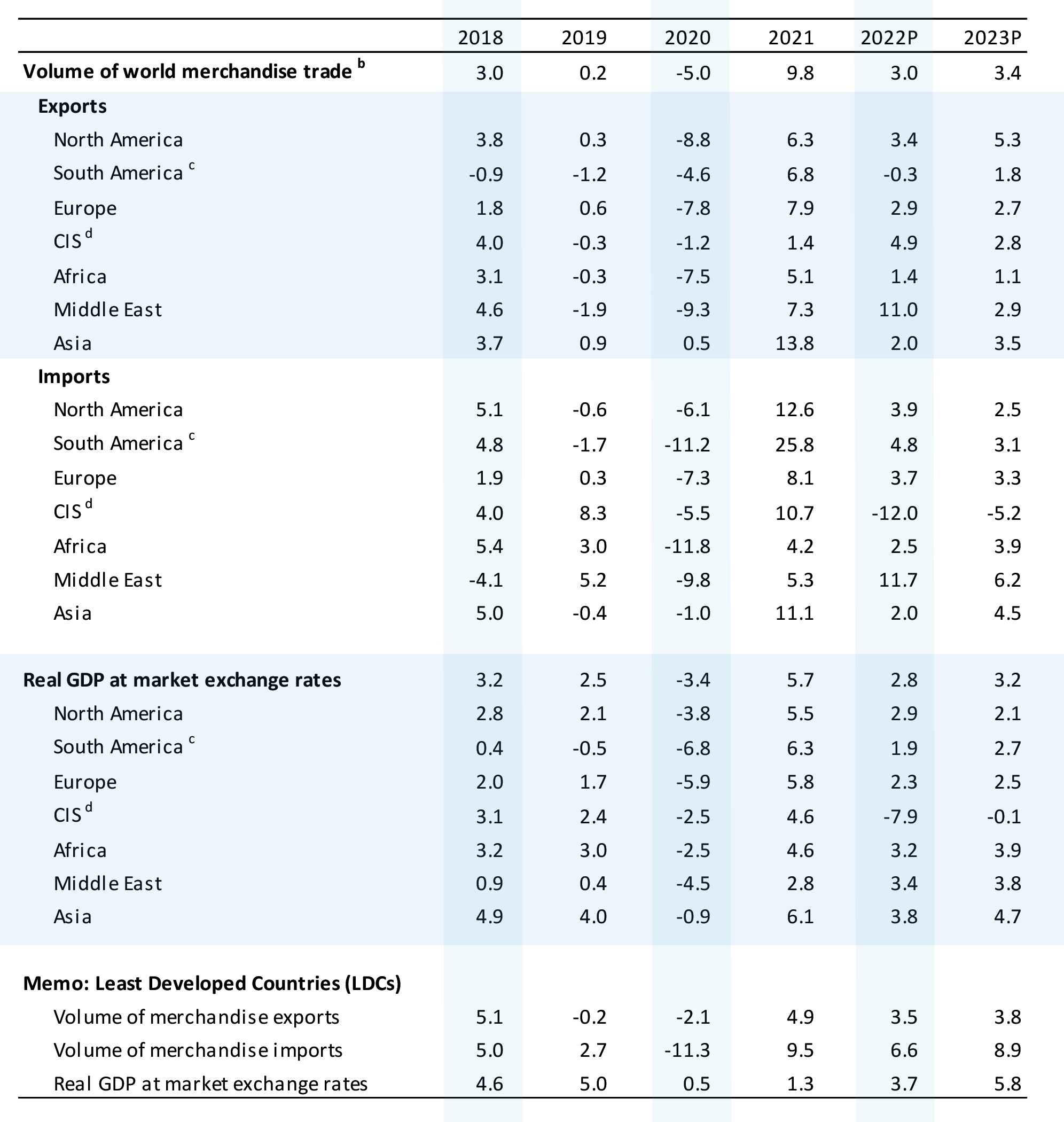 As for export rates, the WTO predicts lower export growth for almost all regions except CIS and the Middle East. For instance, while in 2021 North America recorded a 6.3% increase in exports, in 2022 the figure is expected to be 3.4%. Similarly, the export growth rate in Europe is predicted to be 2.9% in 2022 compared to 7.9% in 2021.