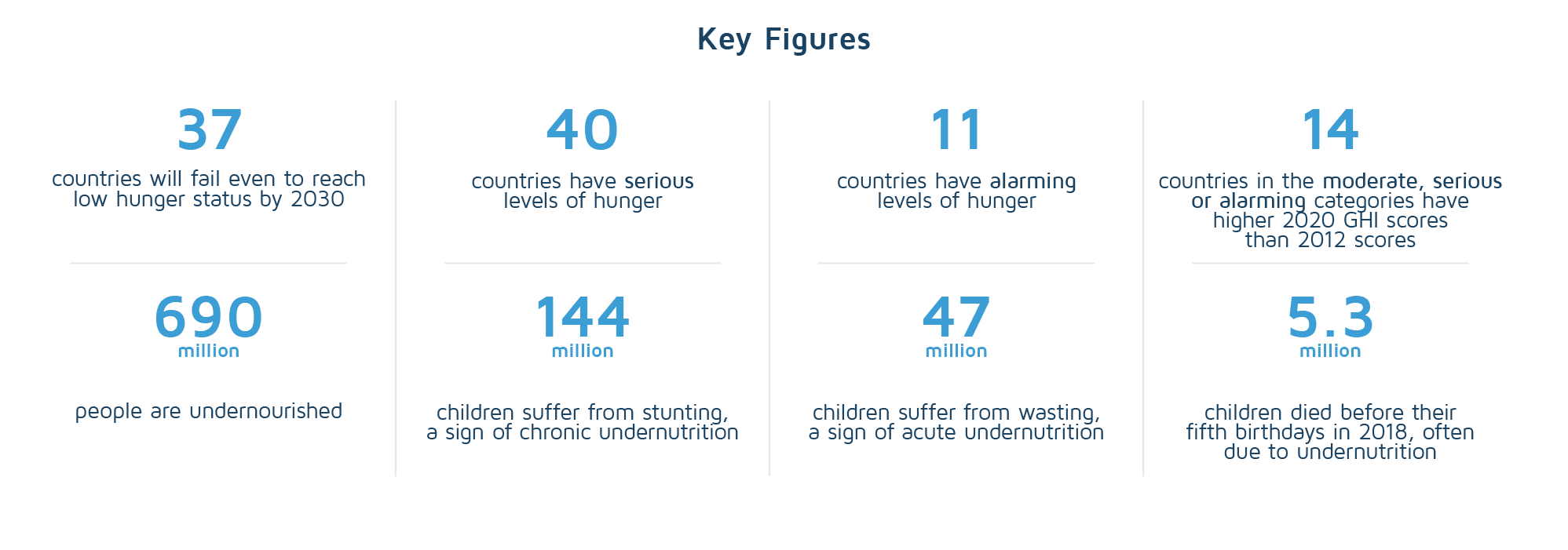 These goals seem to be very ambitious especially bearing in mind that, according to the latest Global Hunger Index, 11 countries have alarming levels of hunger, (i.e., Chad, Timor-Leste, Madagascar, Burundi, Central African Republic, Comoros, Democratic Republic of Congo, Somalia, Syria, South Sudan, and Yemen) and 690 million people around the world are undernourished with almost 200 million children suffering from chronic undernutrition and 40 countries facing serious levels of hunger.